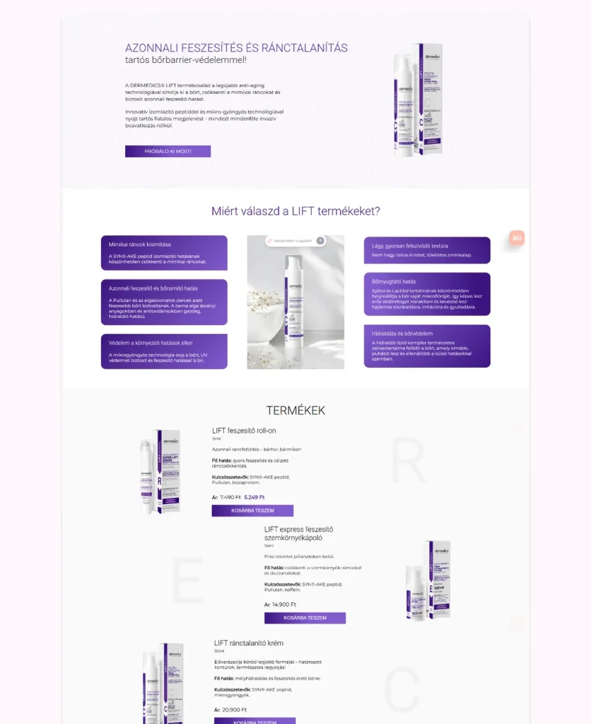 A SkinExpert csapata orvoskozmetológiai termékeket forgalmaz, és a marketing kampányaikhoz kértek landoló oldalakat. A DERMEDICS GEN’X termékcsalád részére készült az alábbi landing page:
