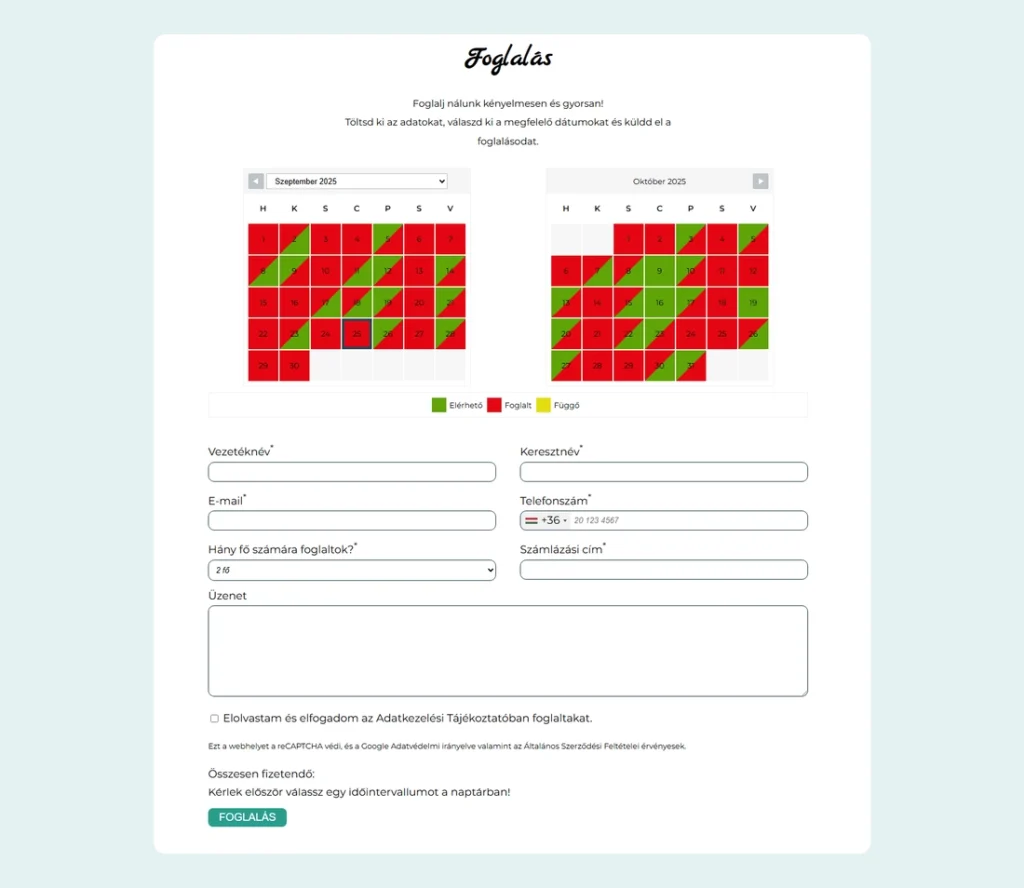 - A manuális foglalás is megoldott, ha a honlap tulajdonosa maga szeretné felvinni a rendszerbe.